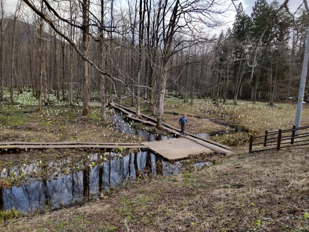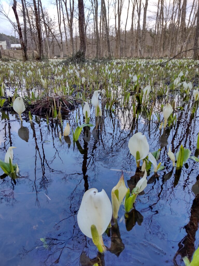 歩道から地面に足を踏み入れることはできませんから、ミズバショウを大きく撮るには、歩道近くの花を撮るか、望遠レンズが必要です。私は、スマホとキャノン80Dの望遠レンズで撮りました。スマホは、手を伸ばして花の近くまで寄れるのが便利ですね。80Dは自然の色そのままを写真に収めることができます。この日は、まつりの始まりだったので、それほど多くの人は来ていなくて、3時間ほどいました。自然を堪能できましたよ。