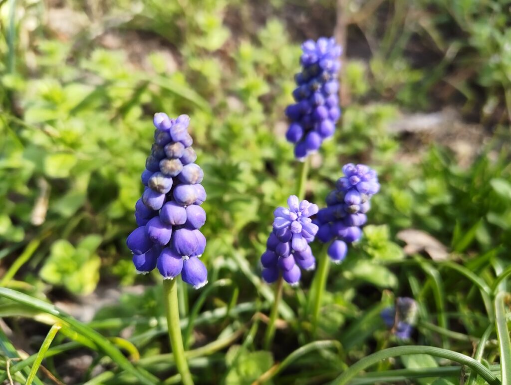 青や紫の花が咲きました。ムスカリといいます。小さな壺型の花で、ブドウの房のように密集して咲いています。見た目から「ブドウヒヤシンス」とも呼ばれます。同時に、秋田市では桜が一斉に咲いています。 このムスカリは、全国的には3月から5月頃に咲き...